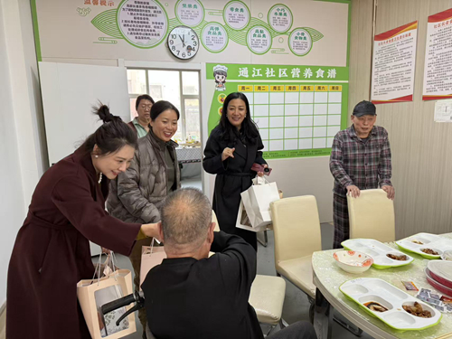随后,大家前往通江街道综合服务养老中心。在这里,大家将一份份满载心意的礼品送到老人手中,并与他们拉家常、话里短,倾听他们的心声与故事。叶珍兰与刘泊然关切地询问老人们在中心的日常生活与文化活动,温馨的场景令人动容。